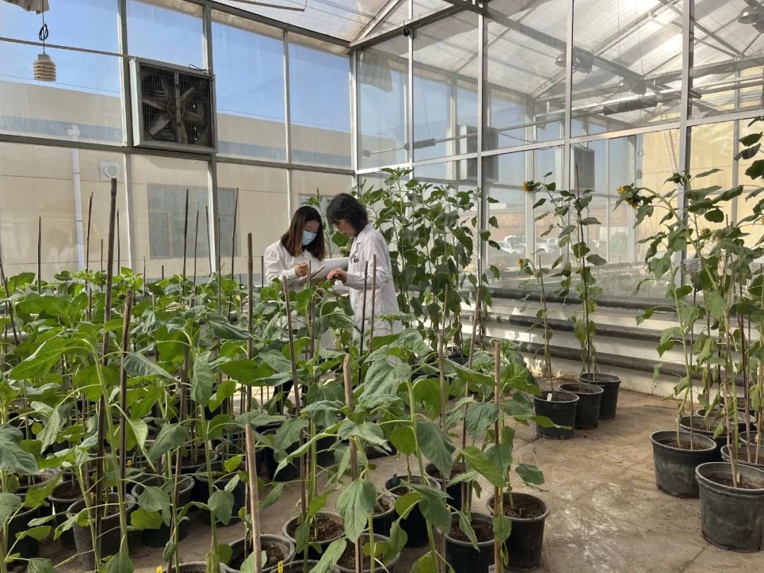 見到三瑞農科向日葵技術研究院副院長馮九煥時,她正在暖棚里和同事一起觀察著向日葵列當的情況并做著記錄。這也是她最新的研究課題,她認為抗列當仍是現在我國葵花產業面臨的一個主要問題,未來抗列當將成為一個標配,這就意味著所有產品推出都必須有抗列當的特性,所以她想要研發一種可以抗除草劑的品種,因為除草劑使用廣泛可以控制列當以及一般雜草。