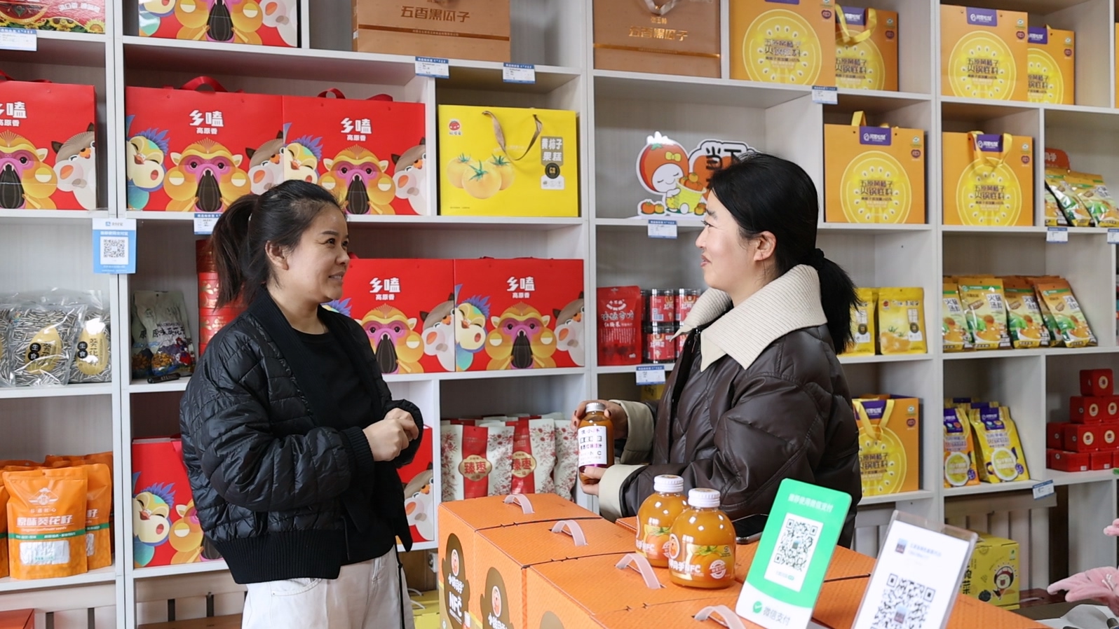 初春時節,走進古郡田園農民專業合作社特產店,記者看到貨架上琳瑯滿目地擺滿了黃柿子汁、玉米等各式各樣的農特產品,店員們正忙著將一箱箱包裝精美的特產打包發貨,發往全國各地。
