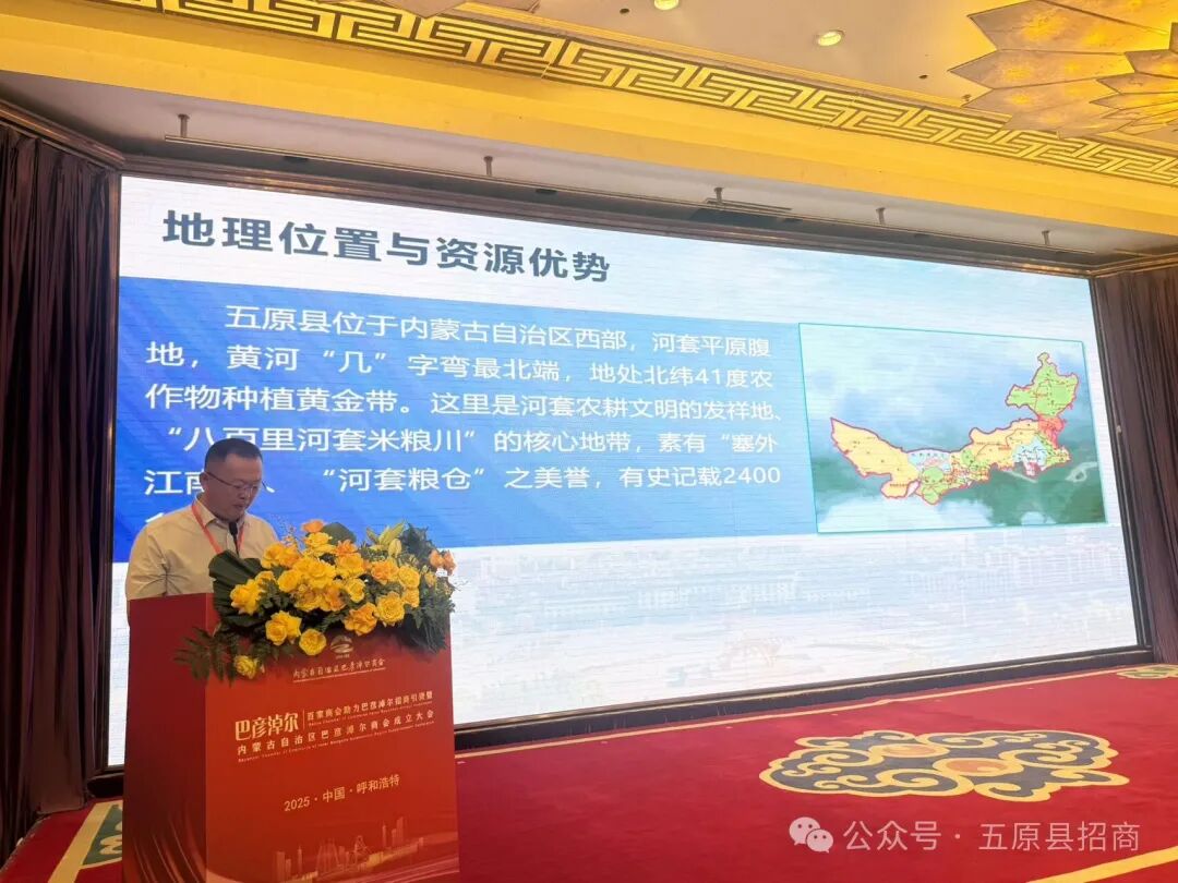9月15日,“百家商會助力巴彥淖爾招商引資大會”暨“內蒙古自治區巴彥淖爾商會成立大會”在呼和浩特市隆重召開。五原縣投資促進主任王覺甫帶隊參會,主動搭建合作橋梁,積極推介縣域發展機遇。